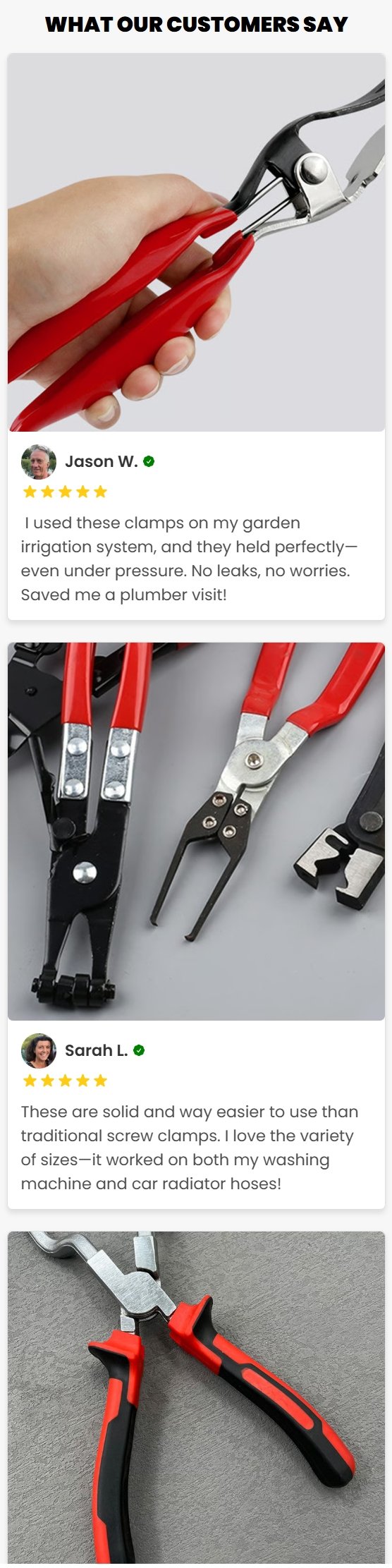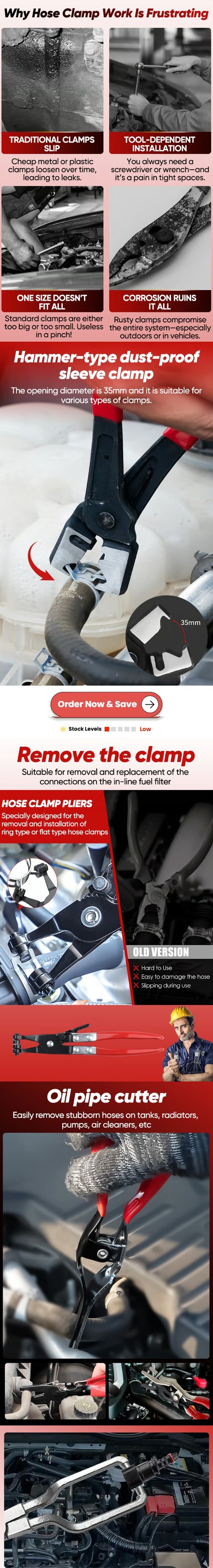 - Rev up your projects with the Sakerplus Professional Hose Clamp Kit – your go-to for fuel line tasks! This dynamic set features a hose removal plier, a Hose Clamp Clic-R Collar Plier, a top-notch Professional Hose Clamp Plier, and a Petrol Clip Pipe Plier. Say goodbye to delays and hello to speedy, hassle-free work, leaving you more time for the exciting stuff!