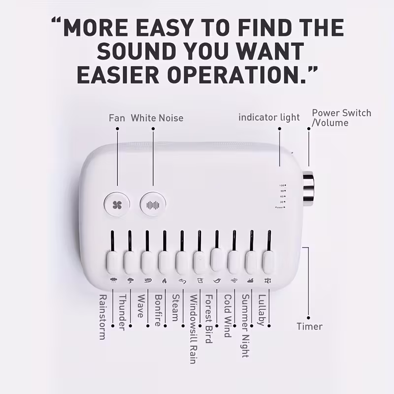 1pc White Noise Machine, Sleep Sound Machine, 10 Soothing Nature Sounds Portable Mini Sleep Sound Machine, Noise Cancelling with Breathing Light