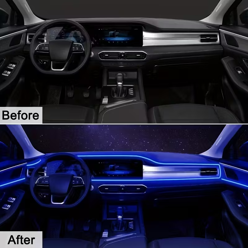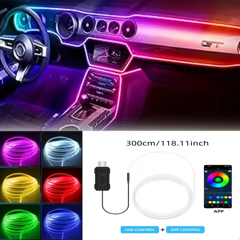 3m 7-color Automotive Interior Light with APP Control And Music Sync Rhythm Ambient Lighting Kit for Doors, Console And Dashboard