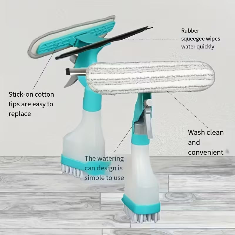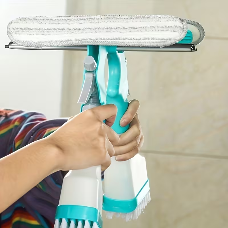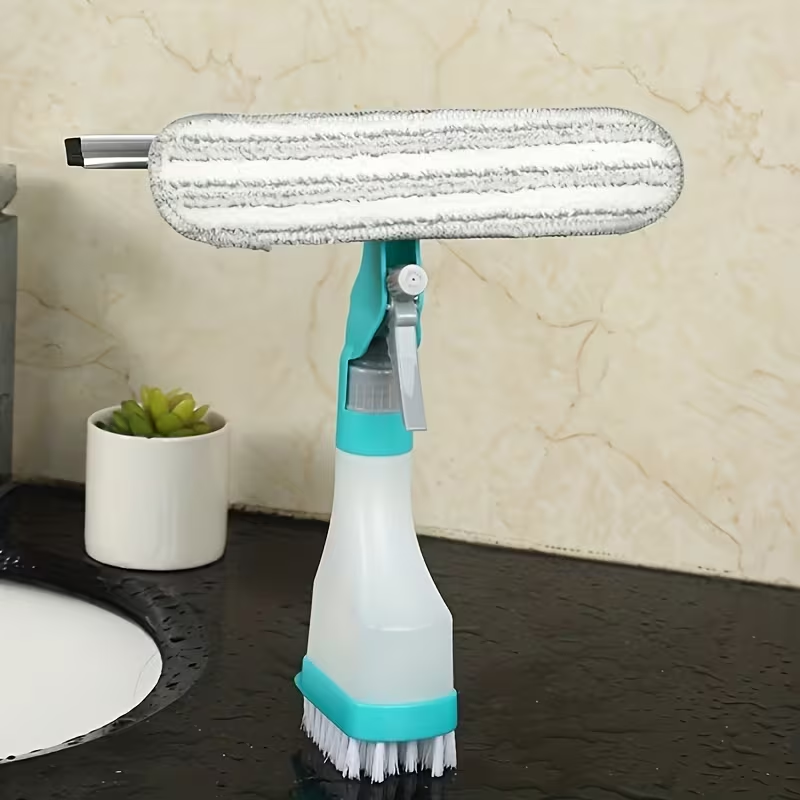 4-in-1 Glass Cleaner Brush: Manual Multi-Surface Tool with Spray, Scrape & Shine Functions - No Electricity Needed, Ergonomic Handle for Streak-Free Windows, Mirrors, Shower Doors - Bathroom, Kitchen, Living Room Essentials, Streakfree Cleaning