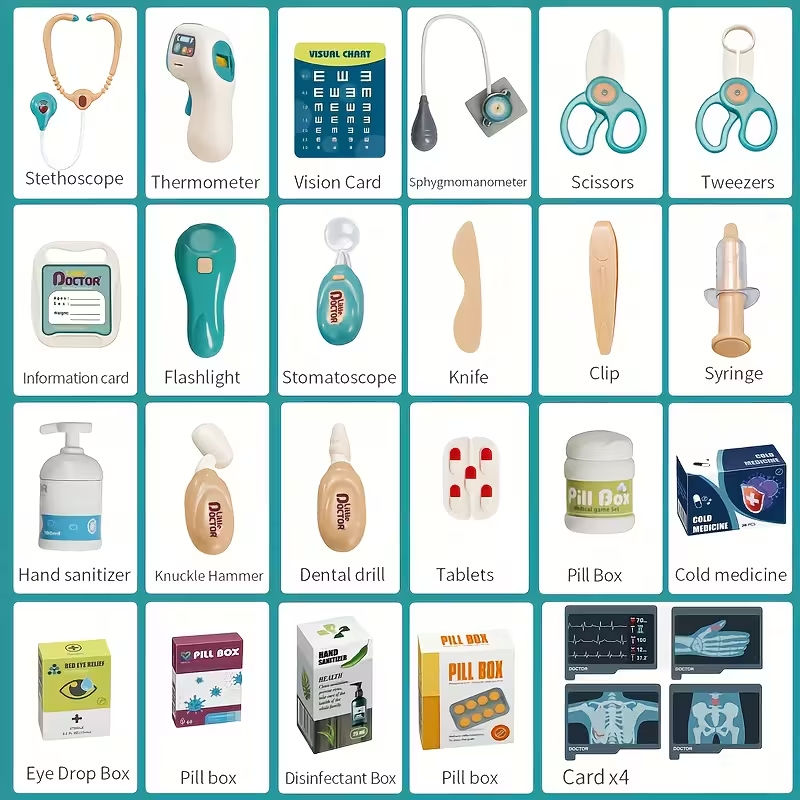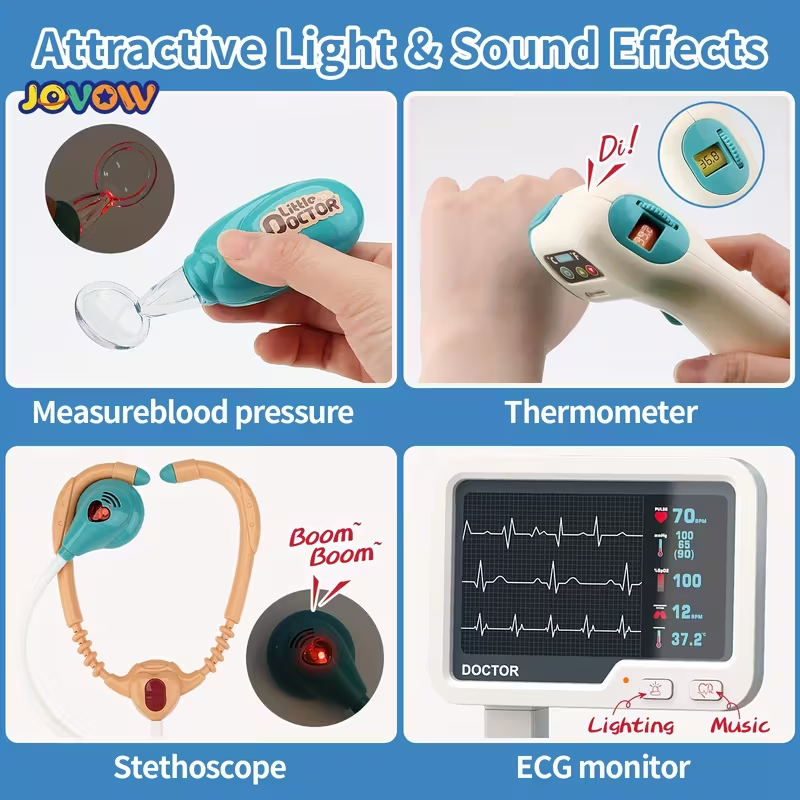 Doctor Game Medical Cart Set , Movable Doctor Toy Table with Stethoscope and Thermometer, Role Playing Doctor Nurse Kit, Various Medical Equipment Toys , Birthday, Thanksgiving and Christmas Gift