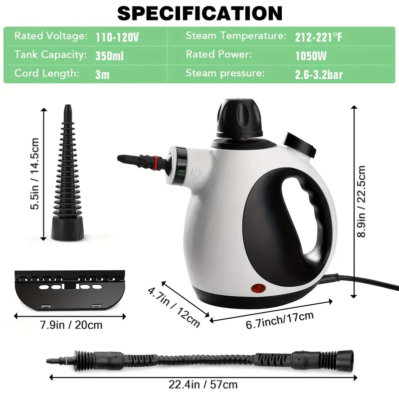 Handheld Steam Cleaner, Steam Cleaner for Home with 10 Accessory Kit, Multipurpose Portable Upholstery Steamer Cleaner with Safety Lock to Remove Dirt, Grease, Etc