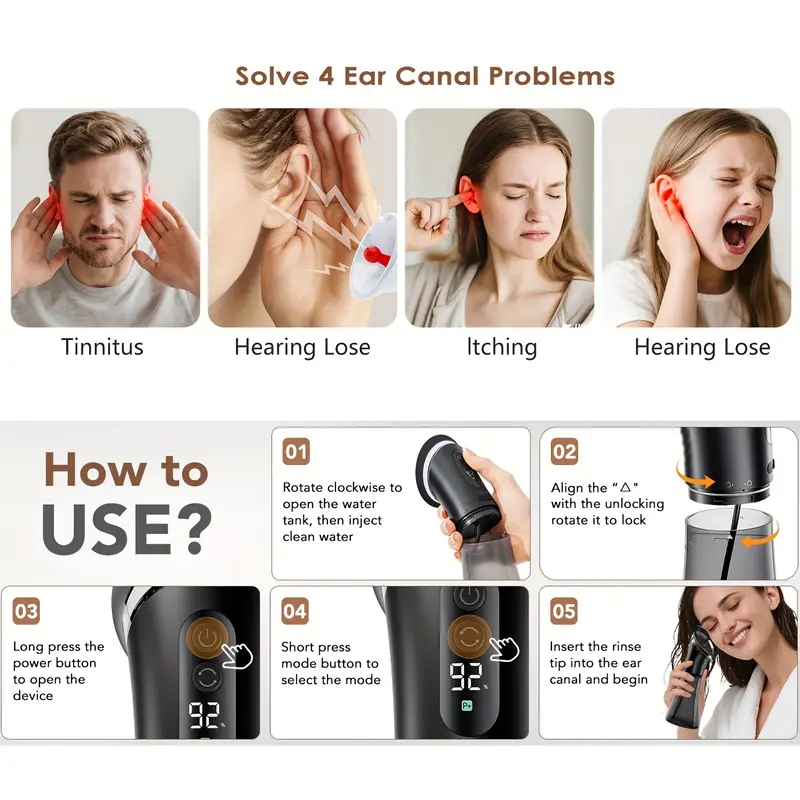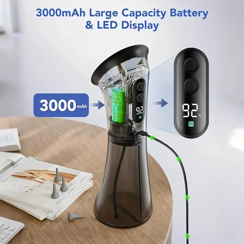 Pro Ear Wax Removal,3 Speed Electric Ear Wax Removal System Pro , Hydraulic Ear Cleaner Kit with Water Temp Sensor and Visual Waste Tank Rechargeable USB, Dry Dirty Storage, Nozzle Belt, Medical Grade Home Care