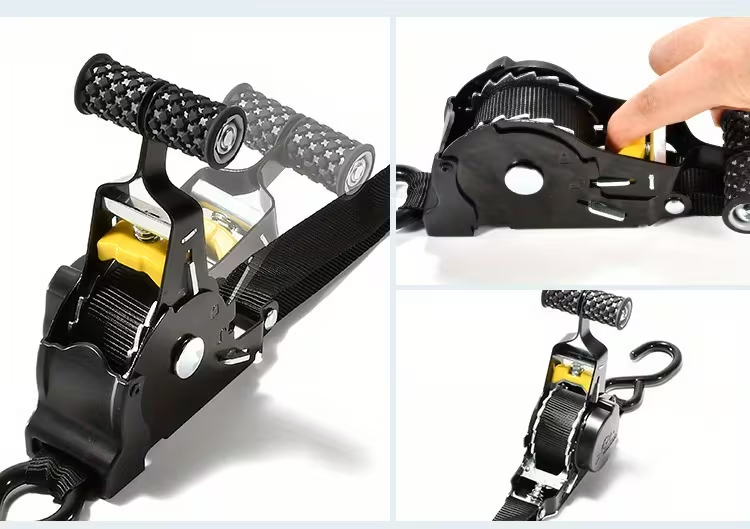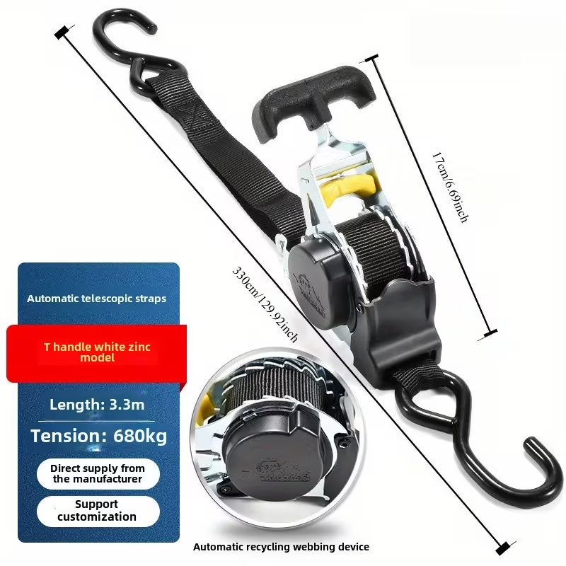 Self Retractable Tie Down Straps, Luggage Strap, Retractable Ratchet Straps, Heavy Duty Ratchet Straps, for Motorcycle, Truck, Trailer, Cargo, with Automatic Webbing Recovery, No Assembly Required