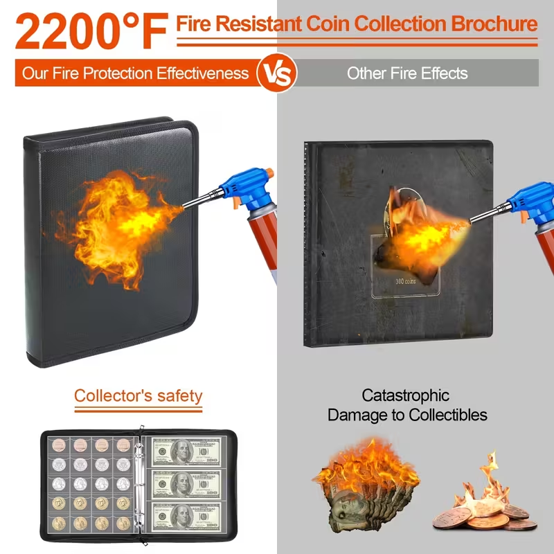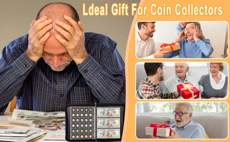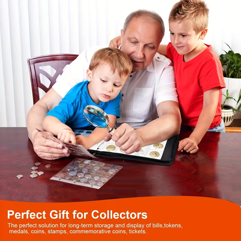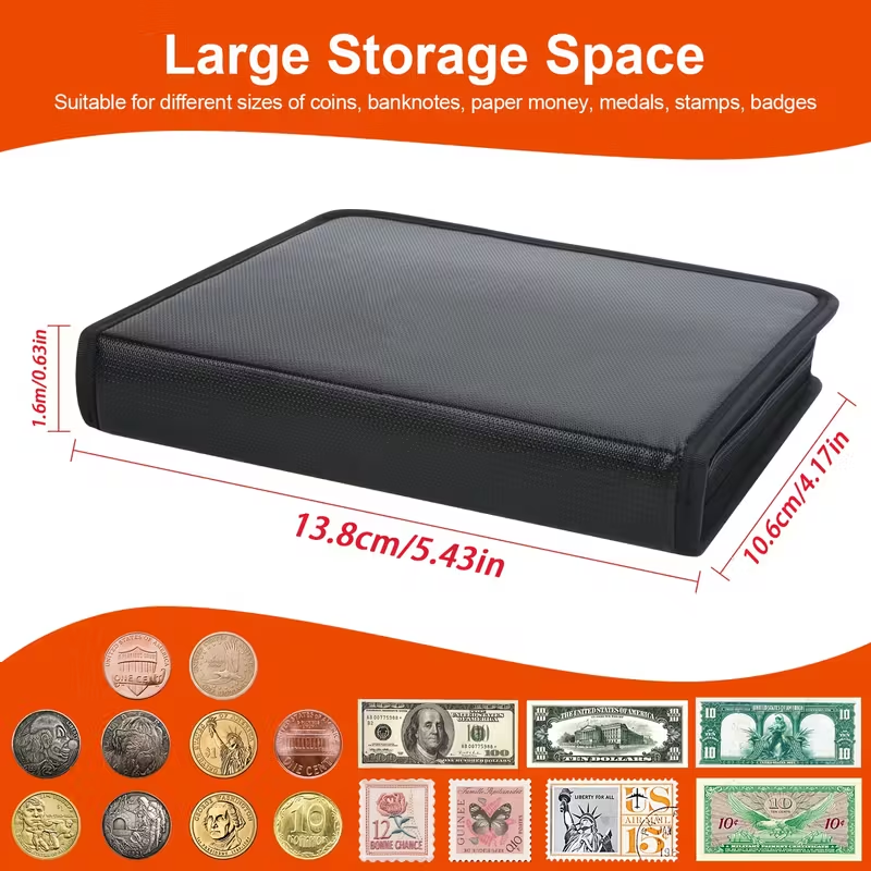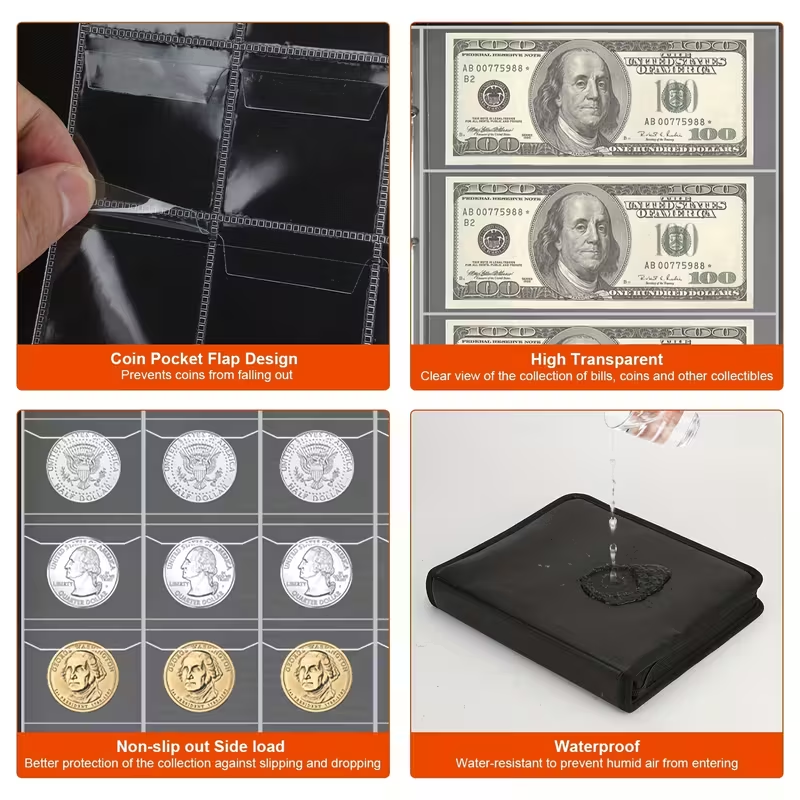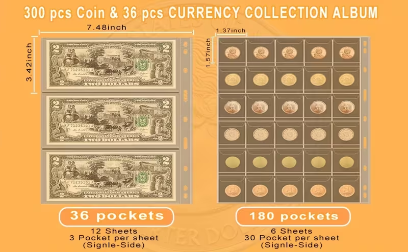 Special Collection Bookshelf For Collectors, 300 Pockets Fireproof Coin Collection Album And 36 Sleeves Coin Storage Boxes For Coin Currency Collecting Supplies, Banknotes, Pennies, Quarters, Stamps, Card Albums