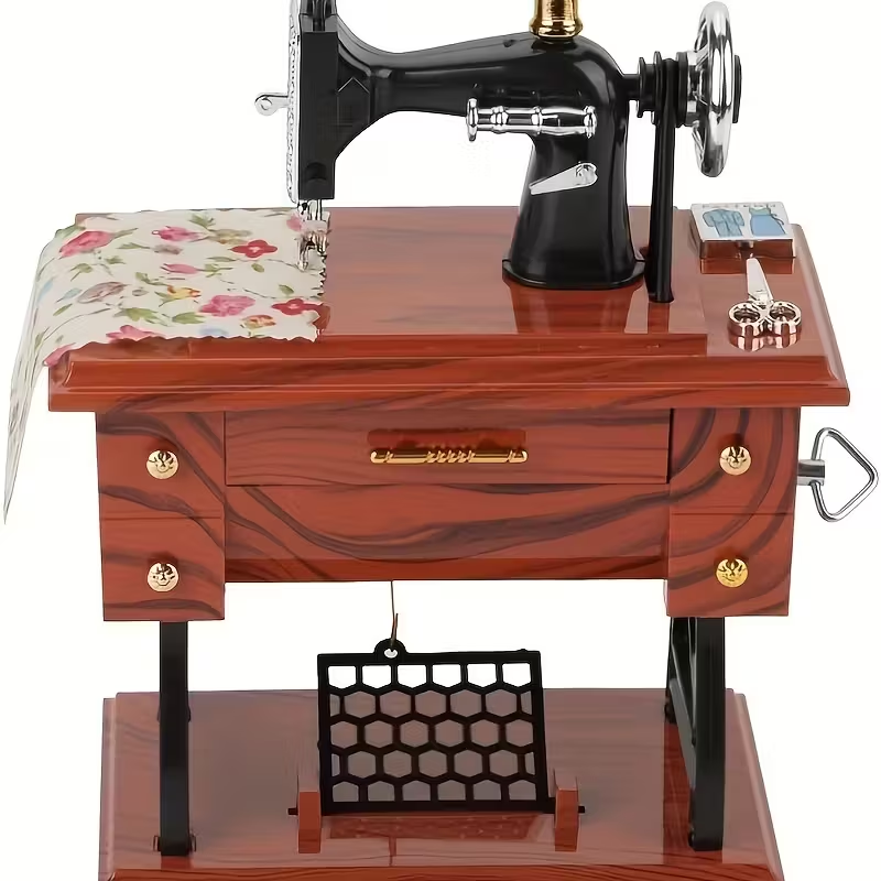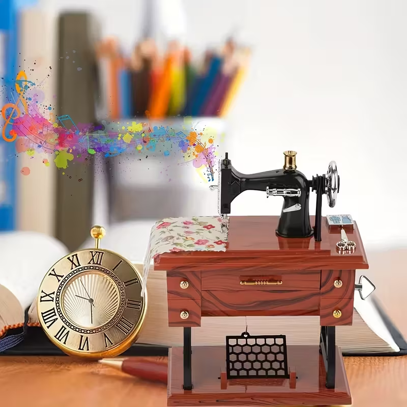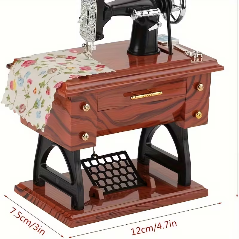 This Mini Sewing Machine Music Box is pure vintage magic! A little clockwork wind-up brings it to life with music 🎶 while the details make it look like a real antique sewing machine. Perfect gift for collectors, décor lovers, or anyone who loves unique keepsakes
