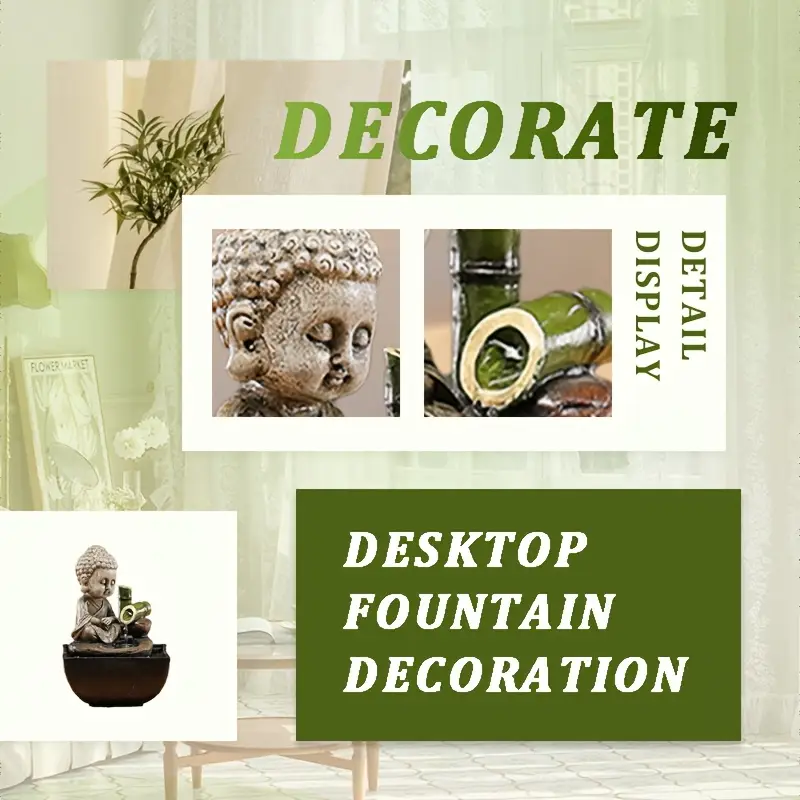 Zen-Inspired Resin Buddha Meditation Fountain - USB Powered, Perfect for Home & Office Decor, Relaxing Waterfall Design, Versatile Indoor Use